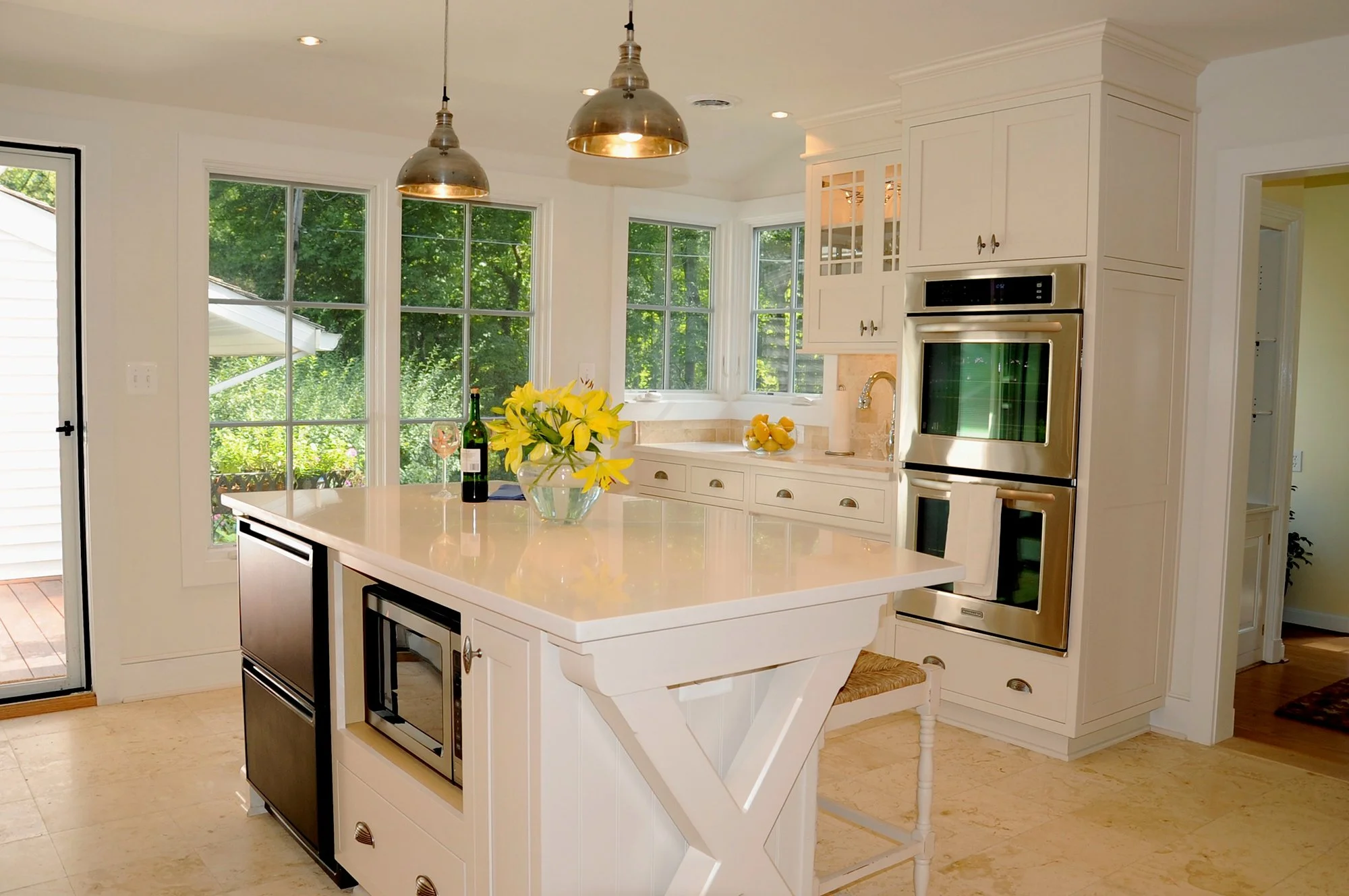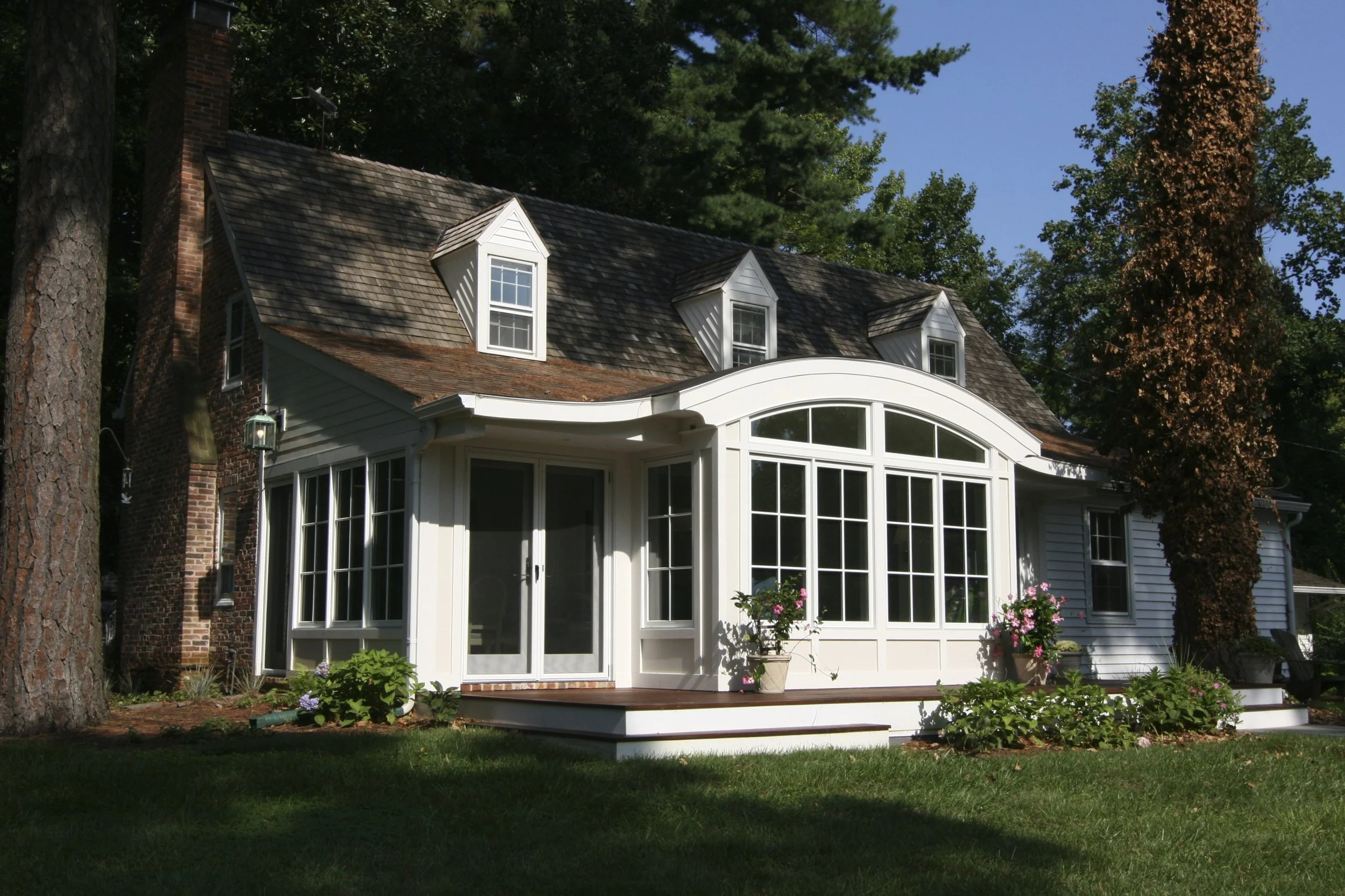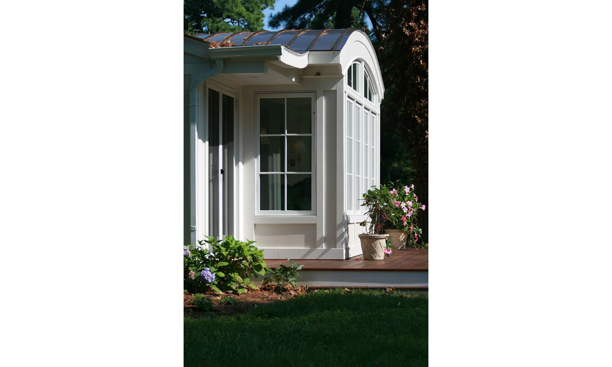 Renovation doesn’t always mean adding more space, it can be about elevating what already exists. At Ayrlie Water, the sunroom was the client’s favorite space, prized for its views of the Magothy River. Our goal was to transform it into a comfortable, year-round retreat. While we preserved the existing roof slope, the windows, doors and finishes were thoughtfully upgraded. A new slate floor and refined window pattern bring a sense of cohesion and clarity. The defining feature, however, is a dramatic barrel-vault ceiling introduced over a modest three-foot addition, creating room for a generous built-in bench and giving the space its distinct character.