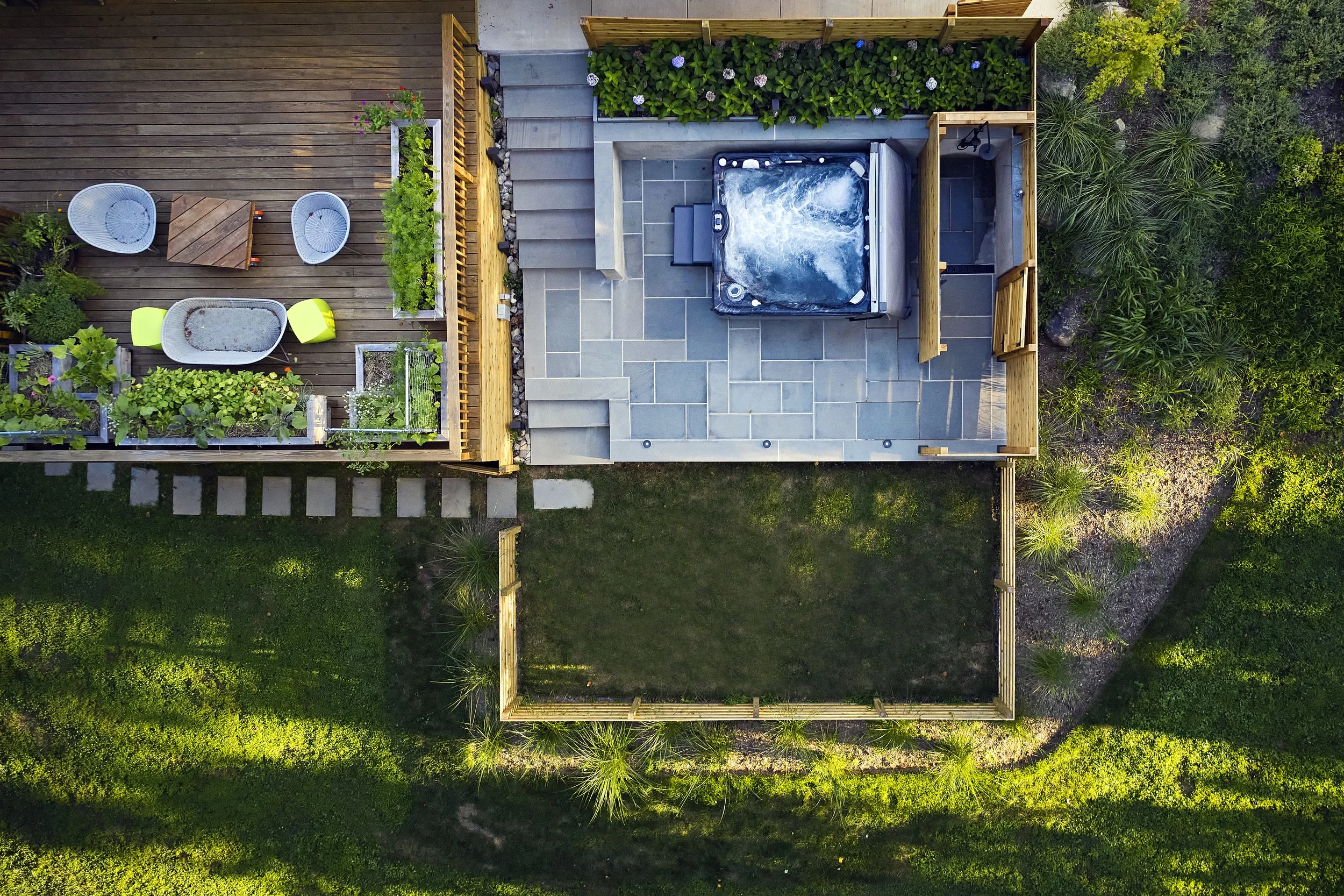 This outdoor oasis is the perfect place to relax and decompress. Positioned between the driveway and main house, the space acts as a quiet threshold, softening the transition from arrival to interior life. Designed to integrate seamlessly with the surrounding topography, the layout follows the natural contours of the site, allowing the landscape to guide both movement and experience.