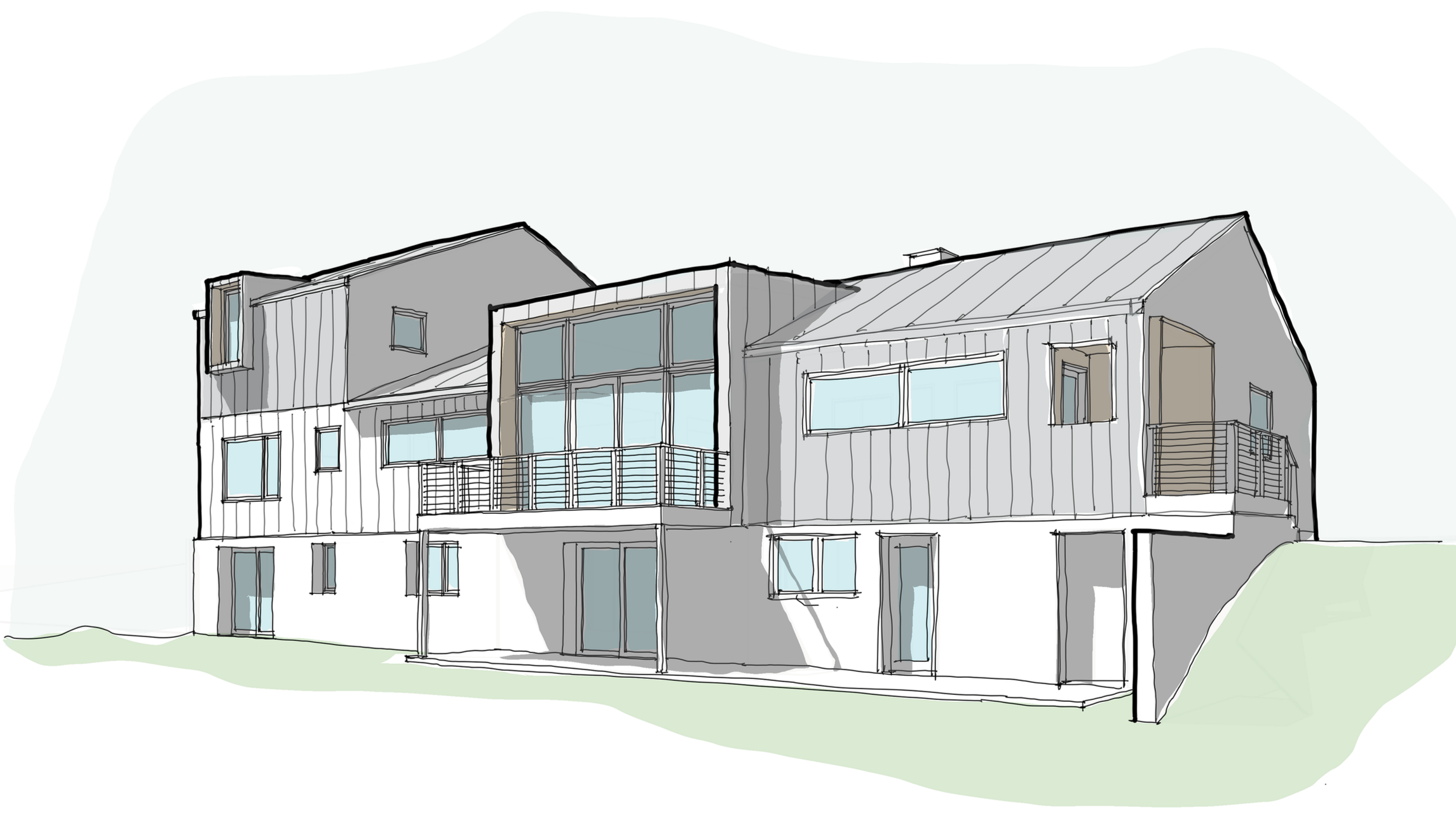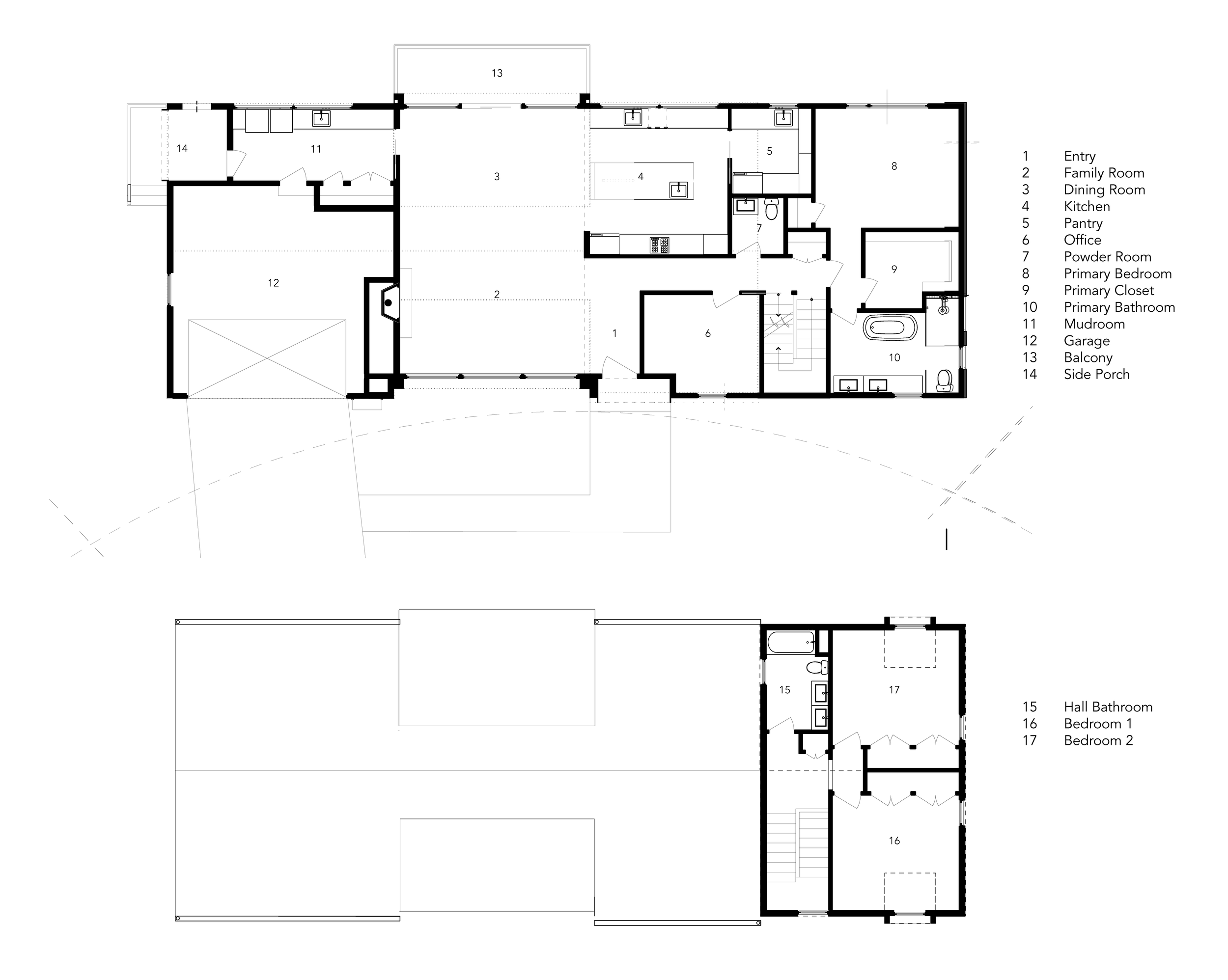 The program was expanded to the second floor, housing two additional bedrooms and a full bath. Each second floor bedroom has a large framed view connecting this element to the first floor design.