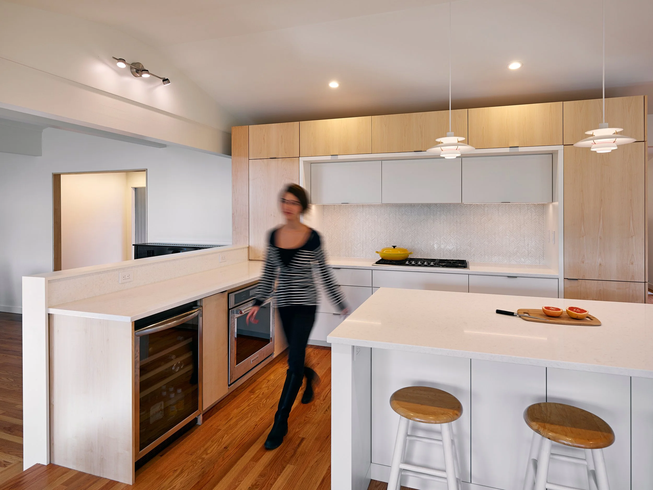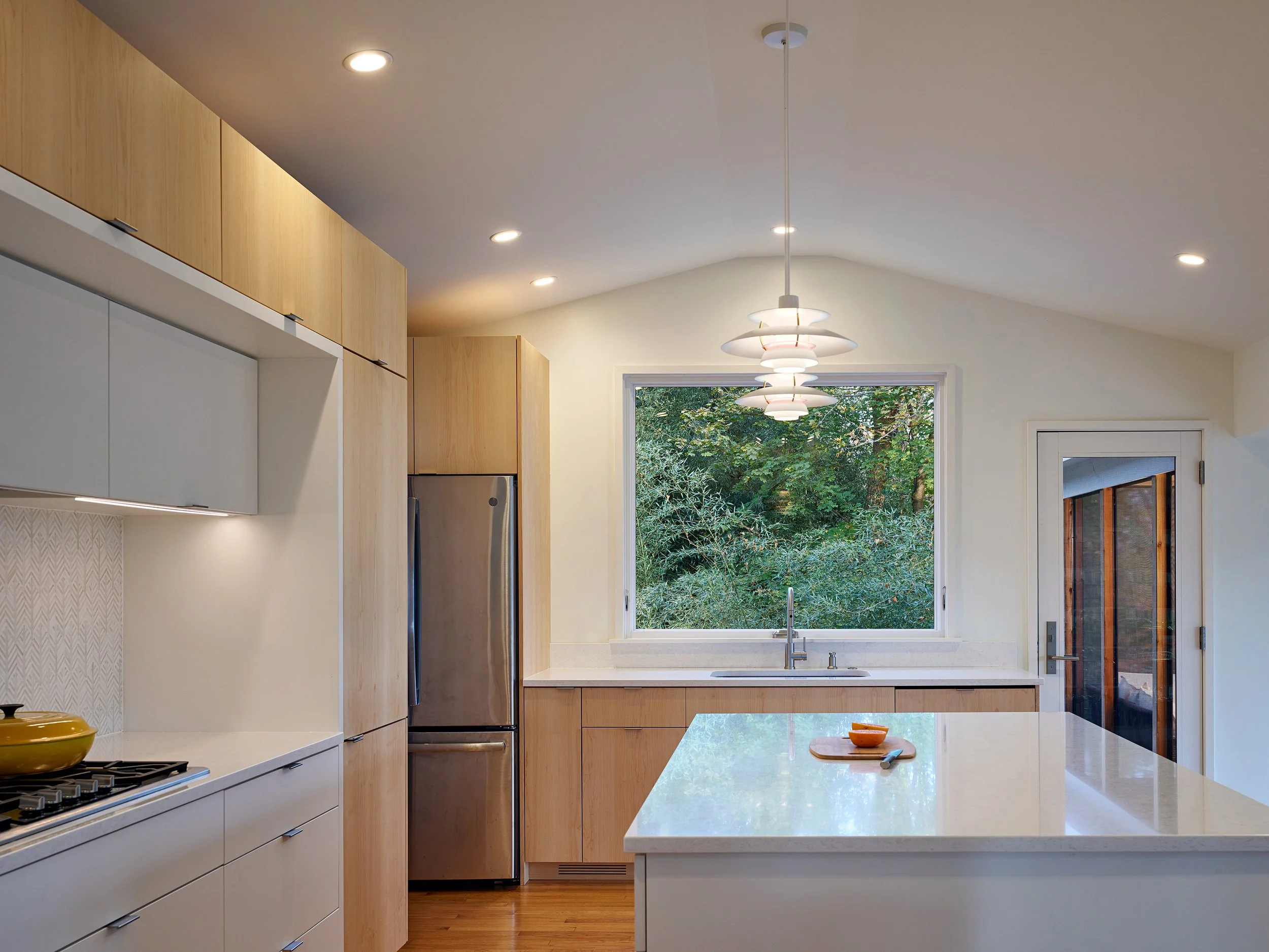 The owners of Woods Hill were immediately drawn to this modest 1969 structure nestled into a wooded hillside. As empty nesters, they were ready to downsize, simplify, and reimagine the house as a comfortable retreat with a clean, modern aesthetic.